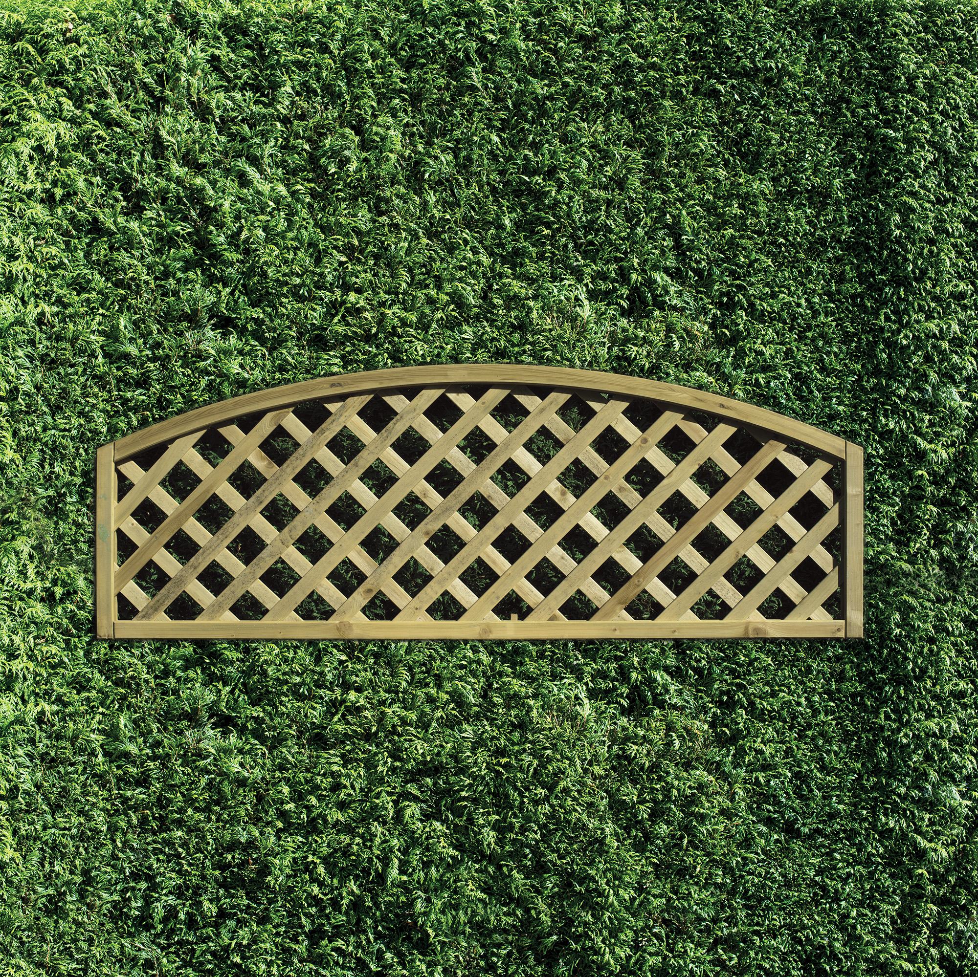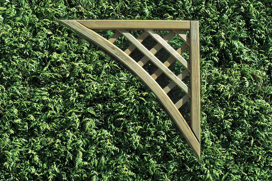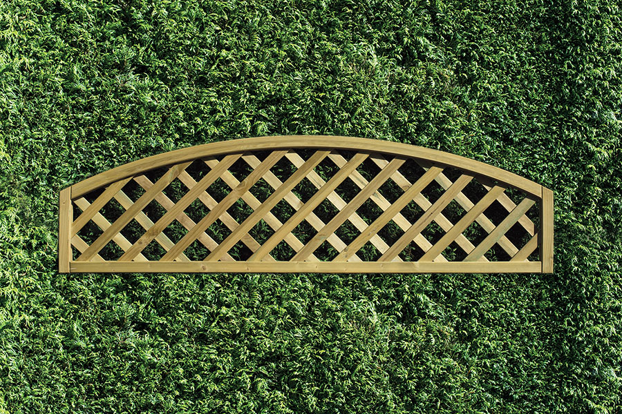 Traditional diamond lattice with a convex (upward) arch at the top. Available in 0.3m x 1.8m, 0.45m x 1.8m or 0.6m x 1.8m panels. We also offer 0.45m x 0.45m corner elements to create decorative turns in your trellis runs.